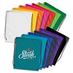 • Affordable drawstring backpack which is manufactured from 210D polyester and has riveted metal eyelets at the base for added strength.